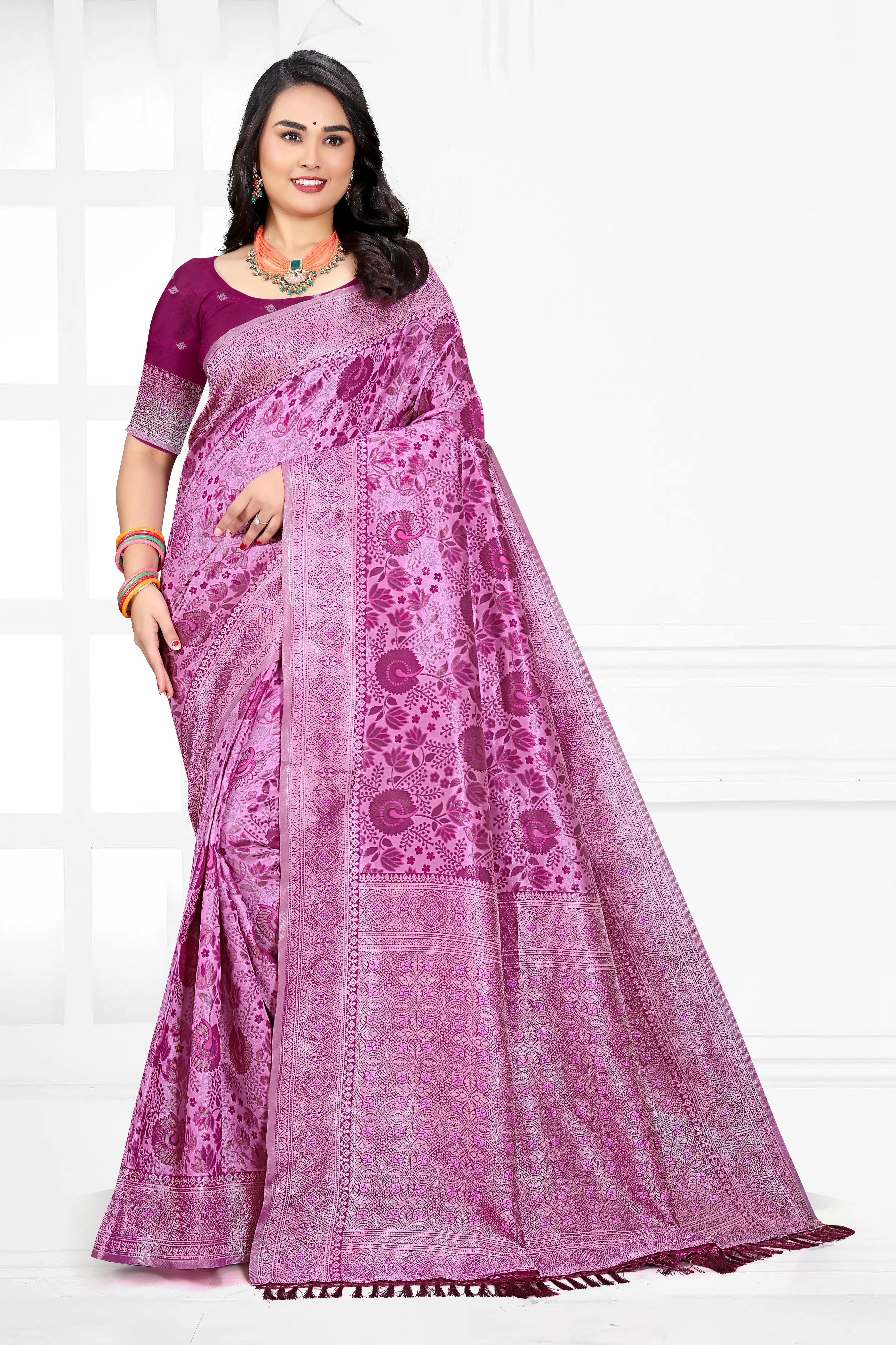 Step into timeless grace with our exquisite Silk Saree, a perfect blend of tradition and modern sophistication. Crafted with intricate weaving, this saree showcases a stunning contrast of aqua blue and golden hues, adorned with delicate floral motifs that add a touch of royal charm.