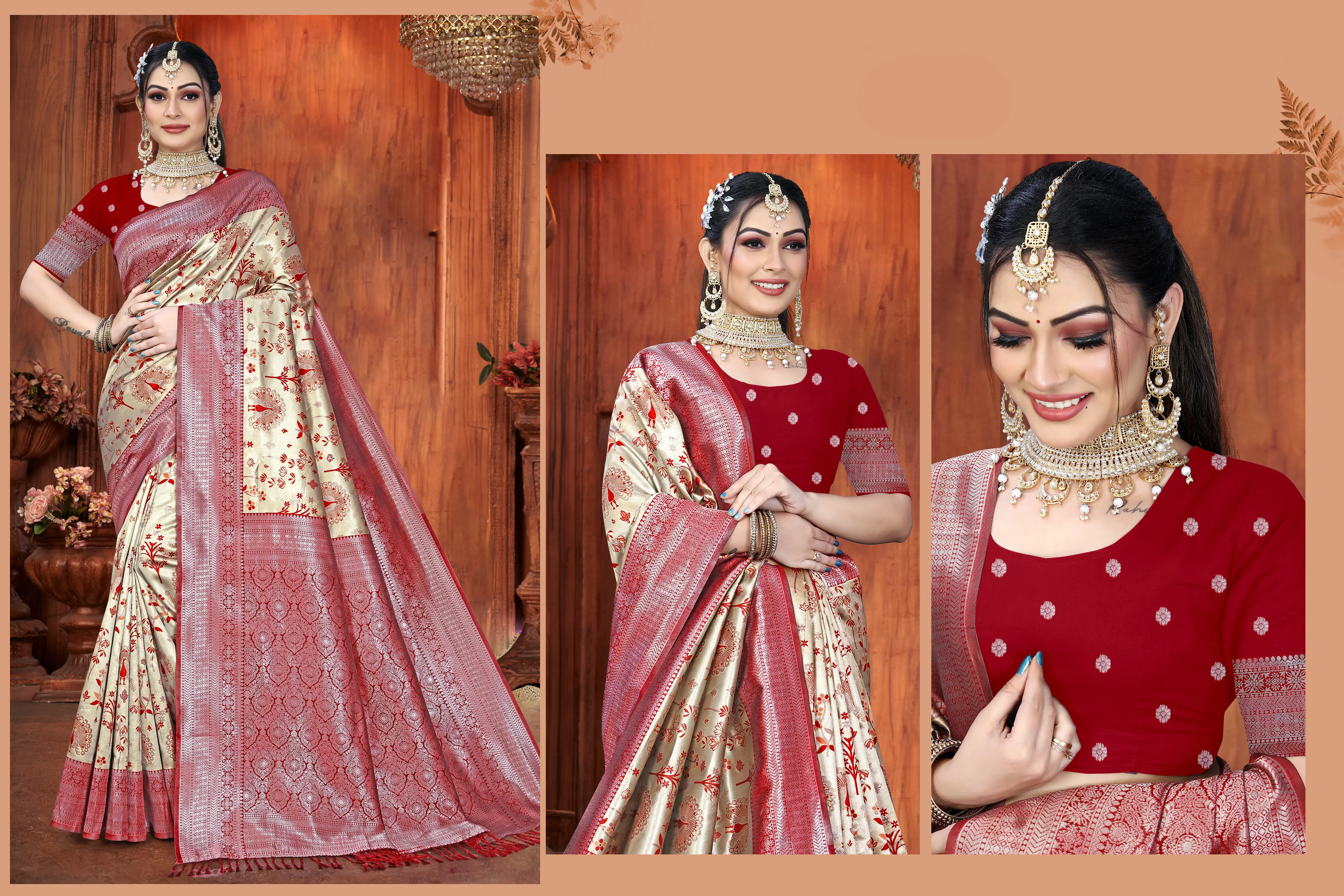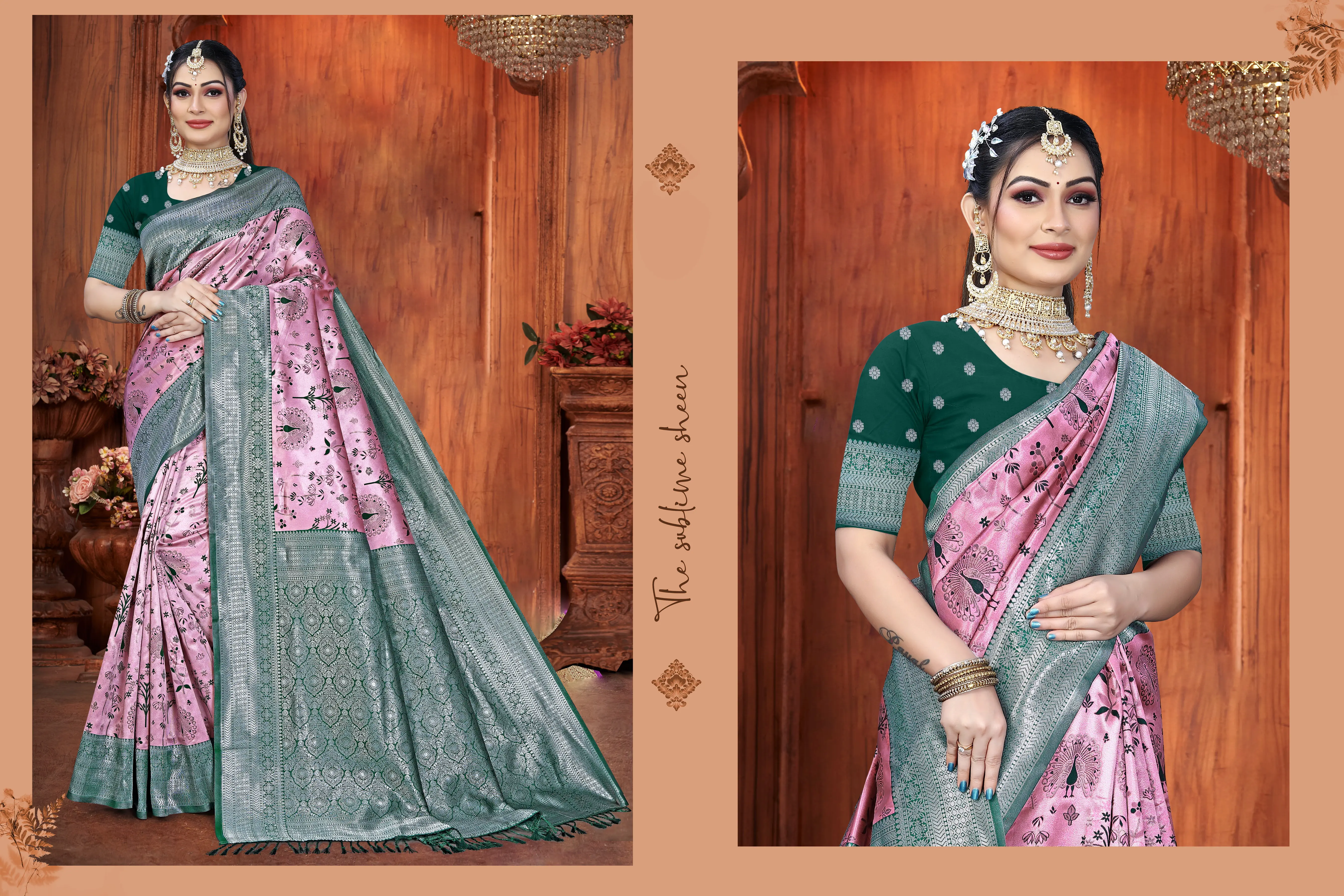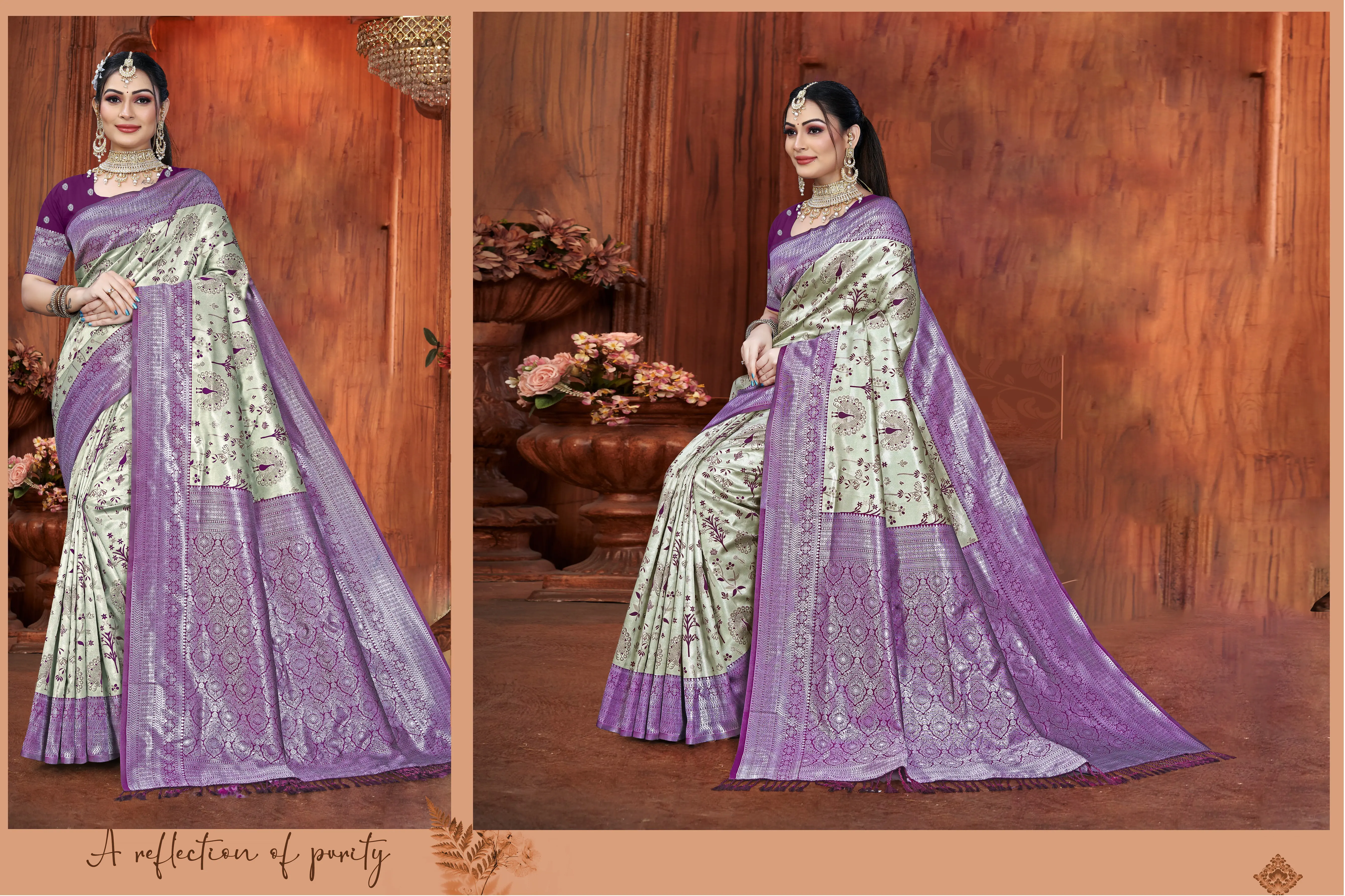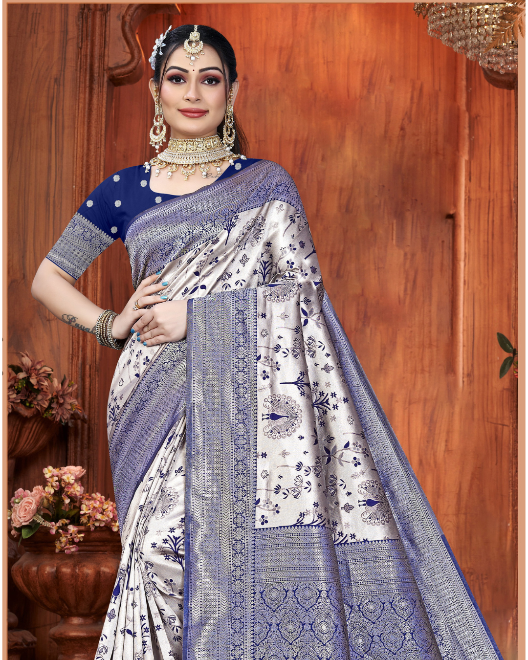 Step into timeless grace with our exquisite Silk Saree, a perfect blend of tradition and modern sophistication. Crafted with intricate weaving, this saree showcases a stunning contrast of aqua blue and golden hues, adorned with delicate floral motifs that add a touch of royal charm.