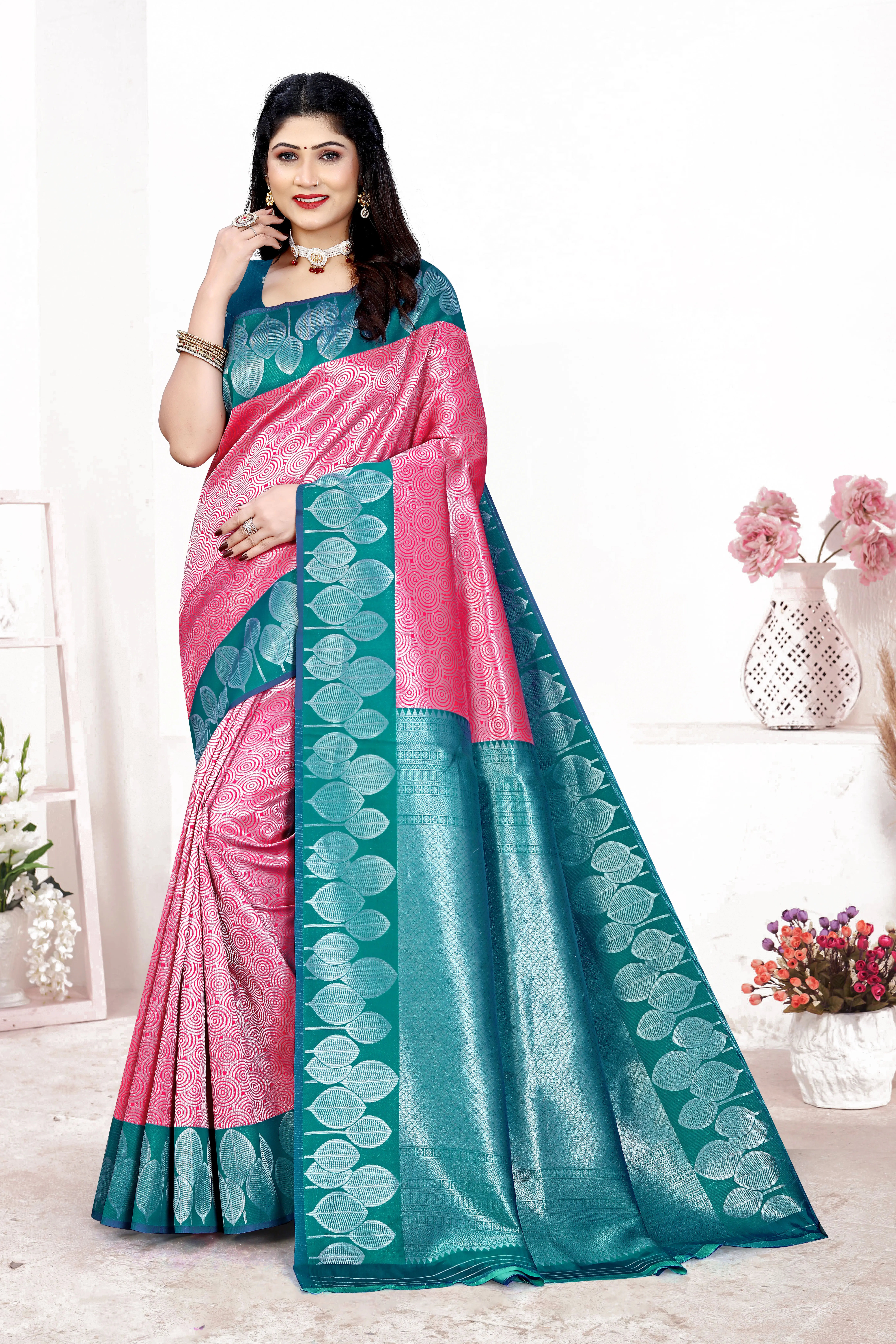 Step into timeless grace with our exquisite Silk Saree, a perfect blend of tradition and modern sophistication. Crafted with intricate weaving, this saree showcases a stunning contrast of aqua blue and golden hues, adorned with delicate floral motifs that add a touch of royal charm.