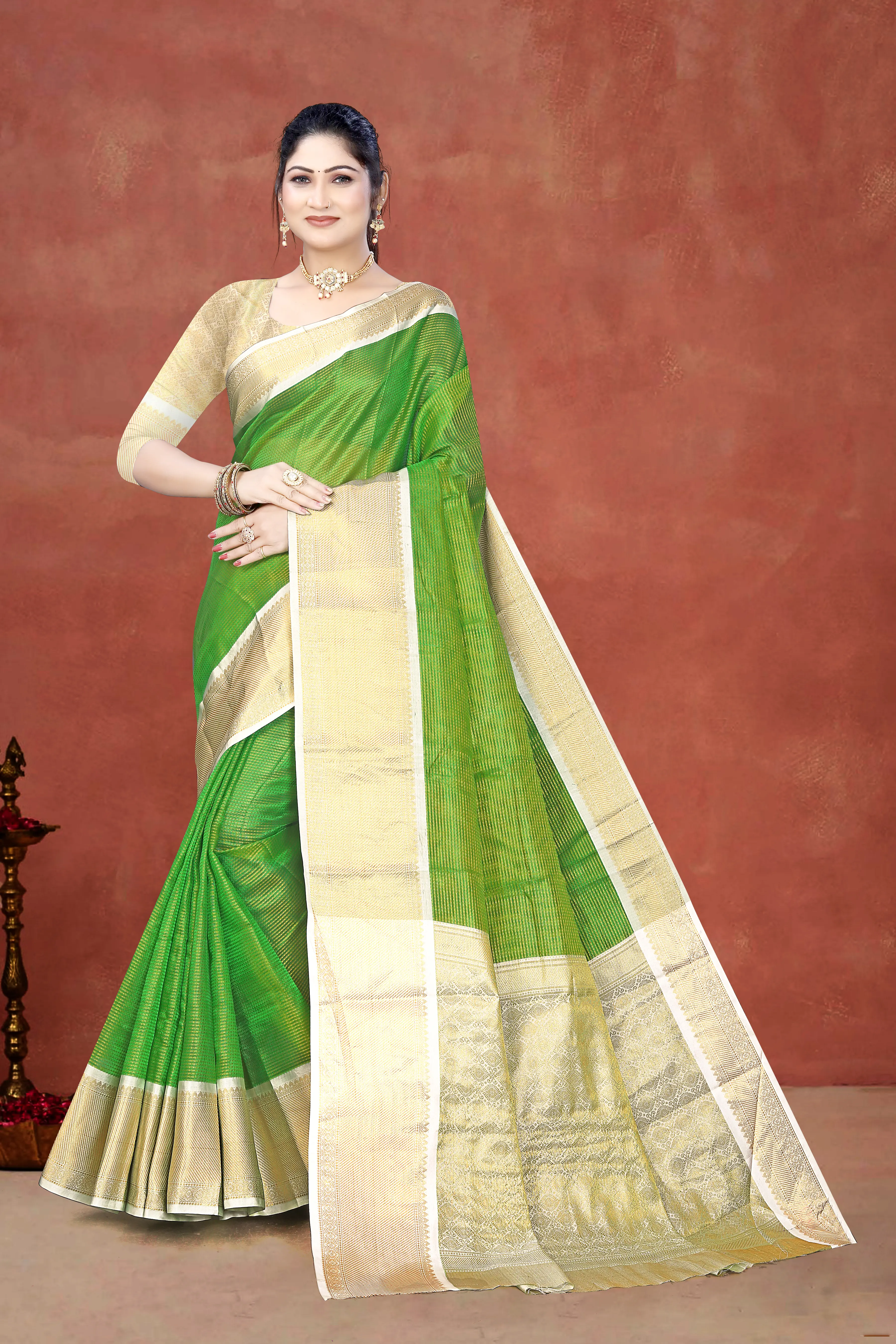 Step into elegance with the Kavarsa Saree, crafted from premium fabric for a luxurious feel and graceful drape. Its exquisite patterns and rich colors make it perfect for weddings, festive occasions, or special celebrations. Designed to combine traditional charm with contemporary style, it adds a touch of sophistication to any wardrobe. Pair it with statement jewelry to complete a stunning, timeless look.