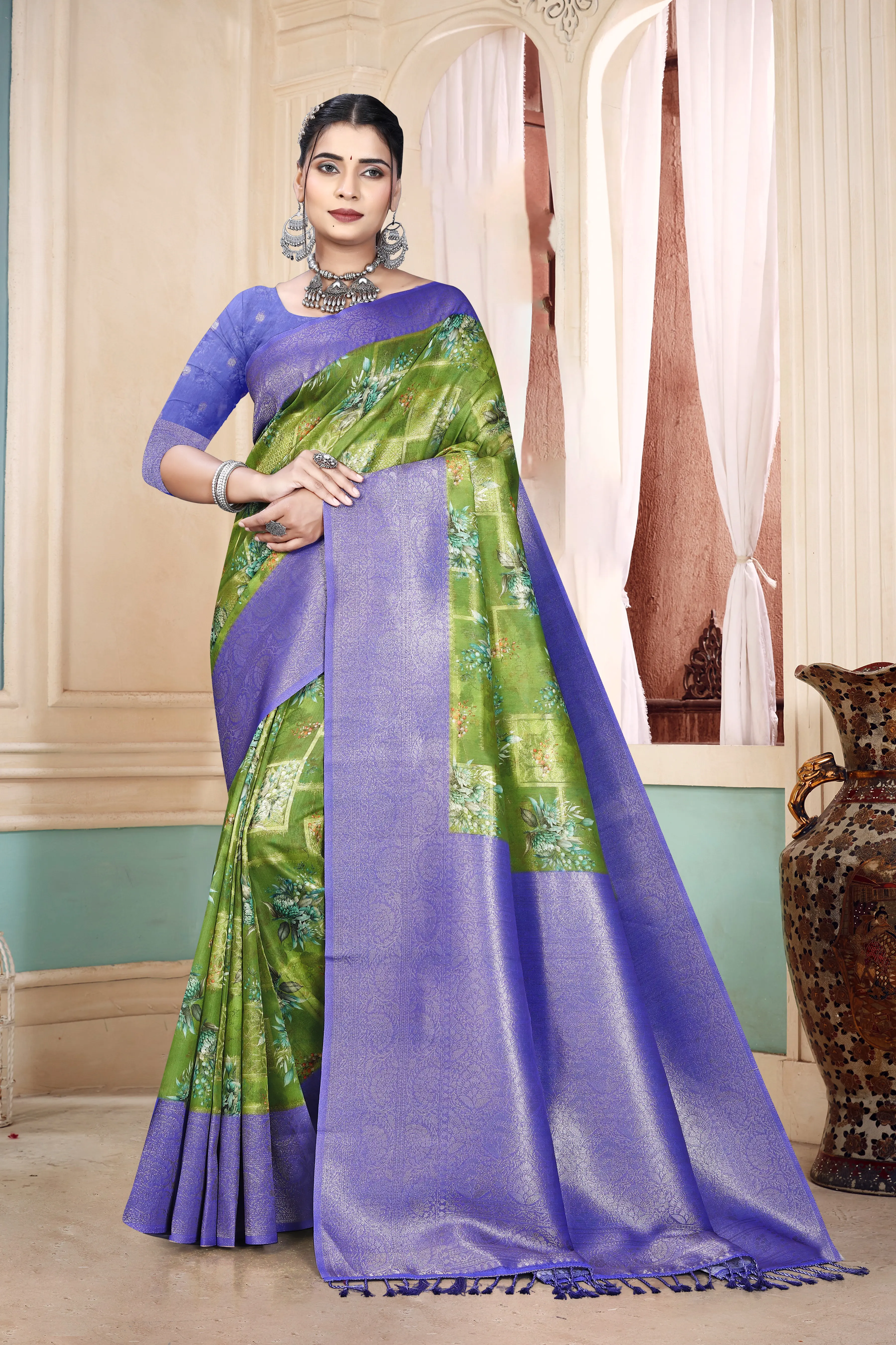 Step into elegance with the Kavarsa Saree, crafted from premium fabric for a luxurious feel and graceful drape. Its exquisite patterns and rich colors make it perfect for weddings, festive occasions, or special celebrations. Designed to combine traditional charm with contemporary style, it adds a touch of sophistication to any wardrobe. Pair it with statement jewelry to complete a stunning, timeless look.