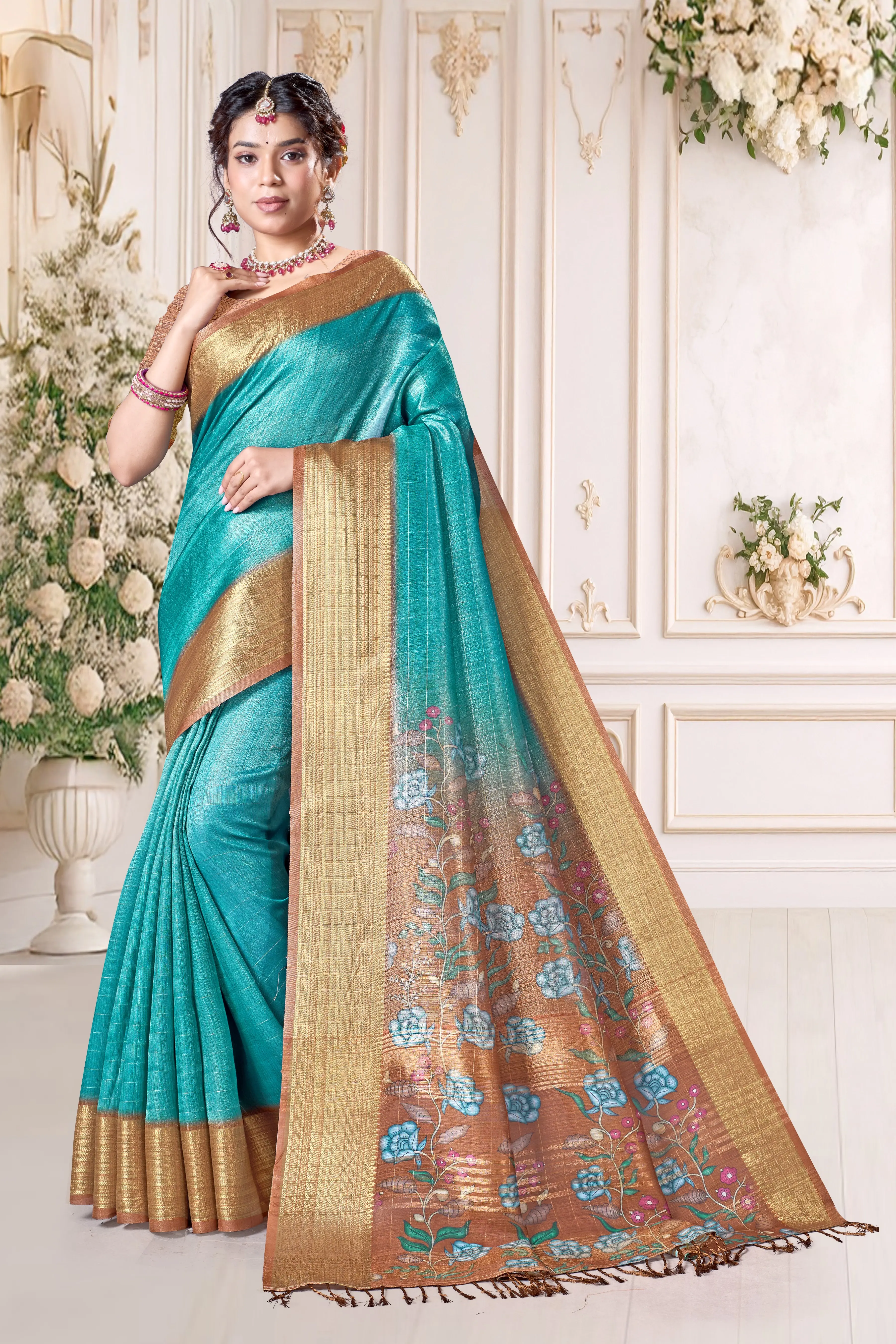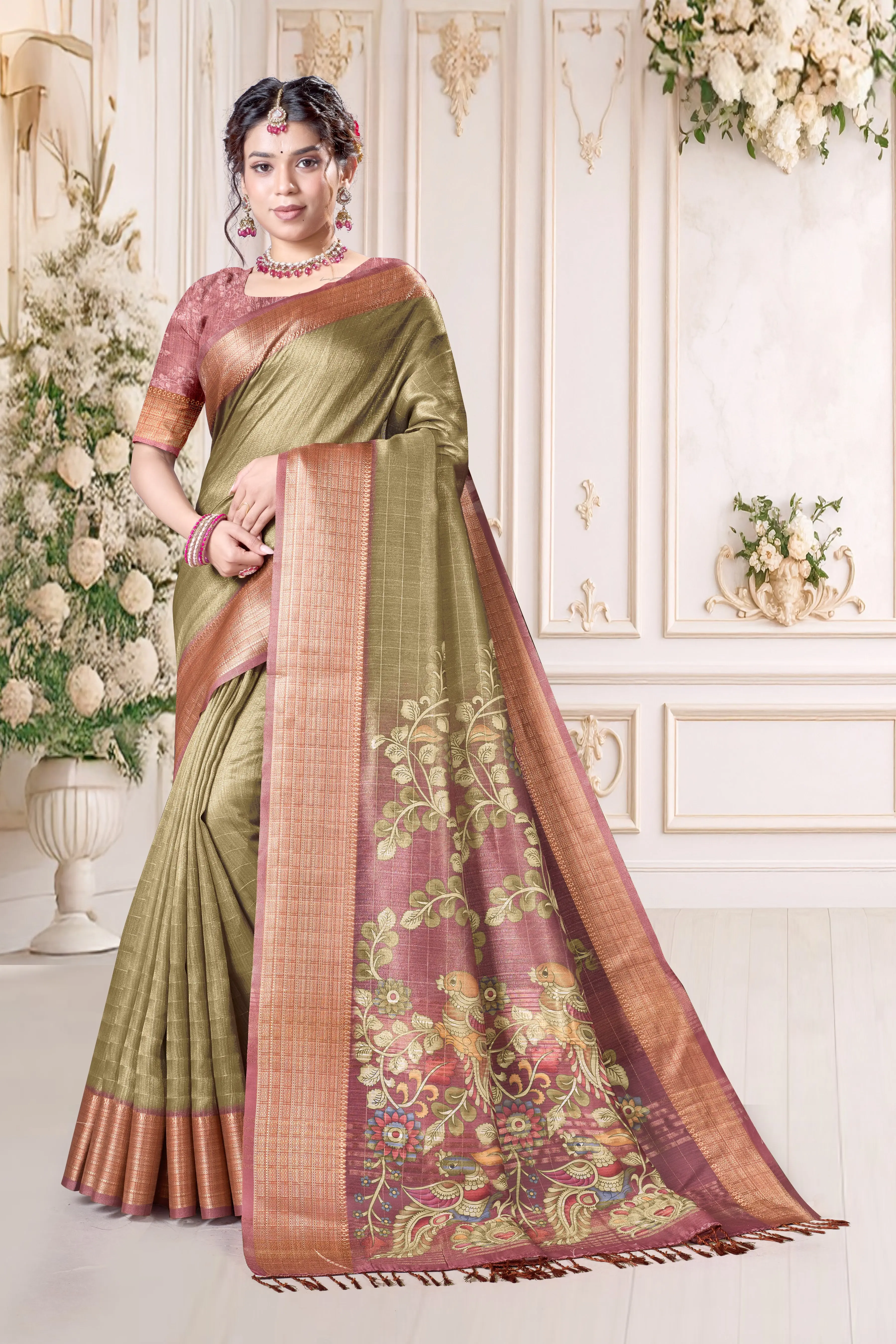The smooth silk texture, rich contrast hues, and tassel-detailed pallu make this saree ideal for festive occasions, weddings, and cultural events. The Panchali Saree embodies grace, beauty, and sophistication in every fold.