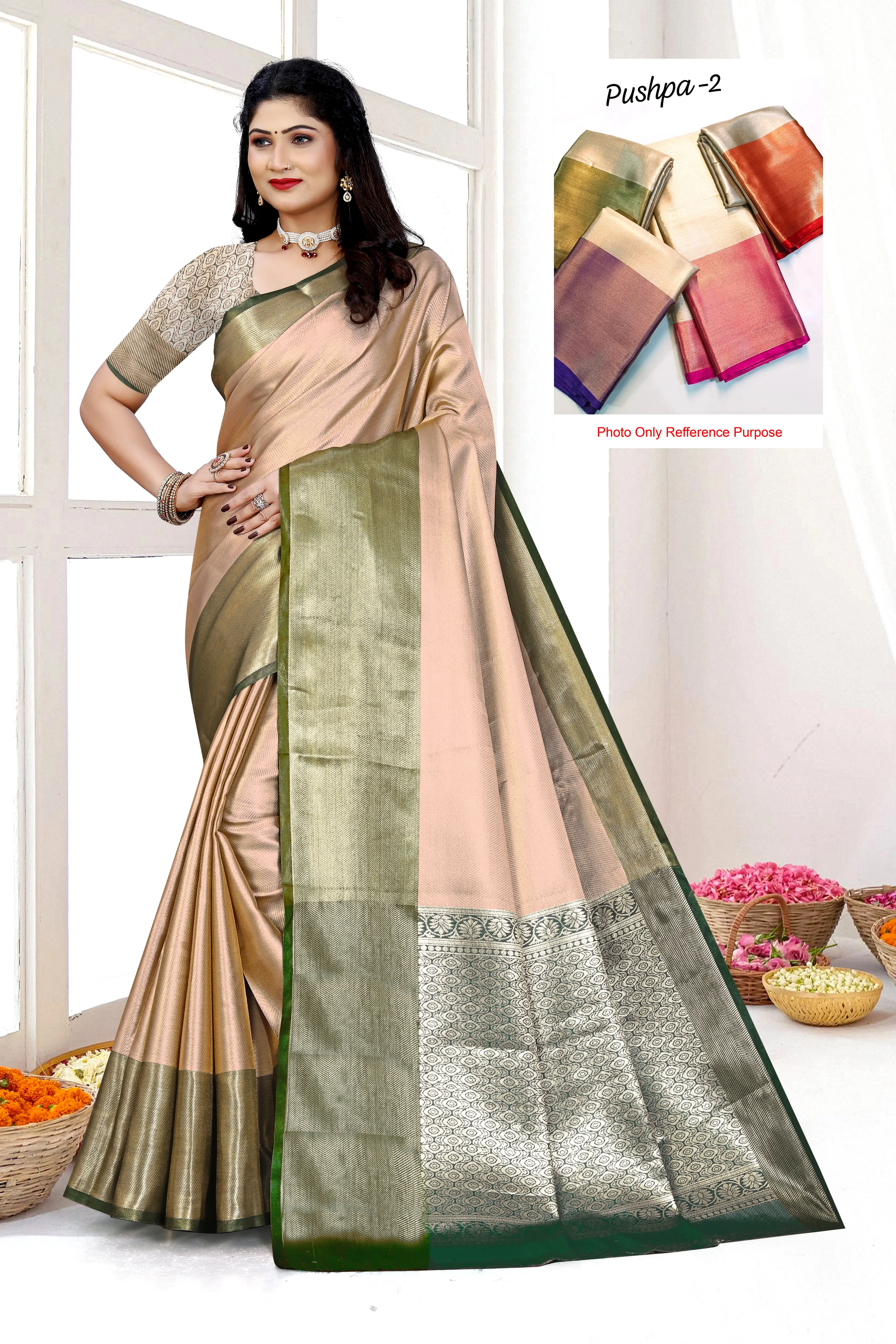 Its lightweight drape and delicate tassel-detailed pallu make it ideal for festive occasions, cultural gatherings, or elegant evening events. The Pushpa Saree brings out your inner glow with a touch of floral sophistication.