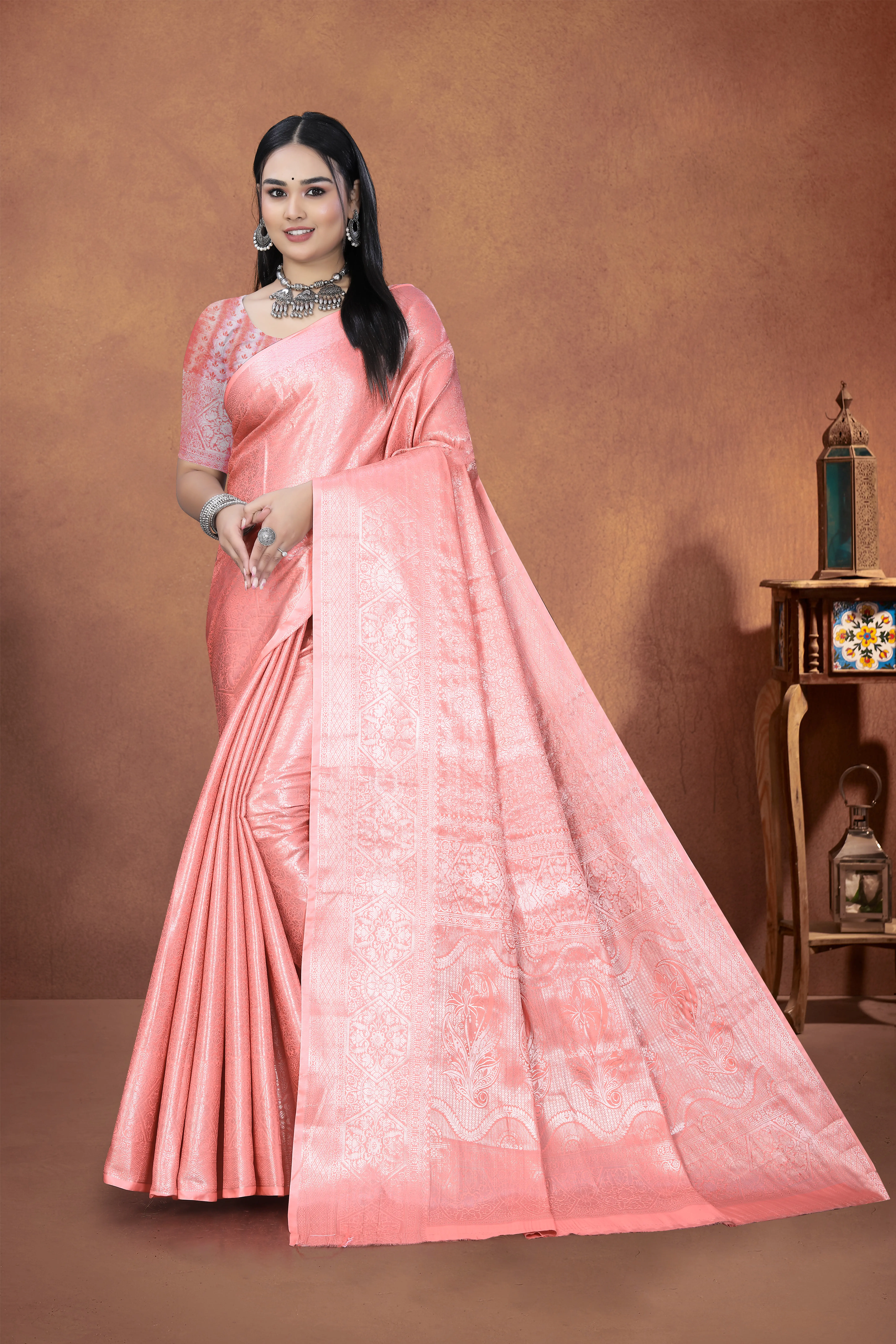 Lightweight, graceful, and finished with a tassel-detailed pallu, the Silver Pari Saree is perfect for festive occasions, weddings, and elegant evening celebrations. It’s a timeless expression of poise, charm, and sophistication — just like its name.