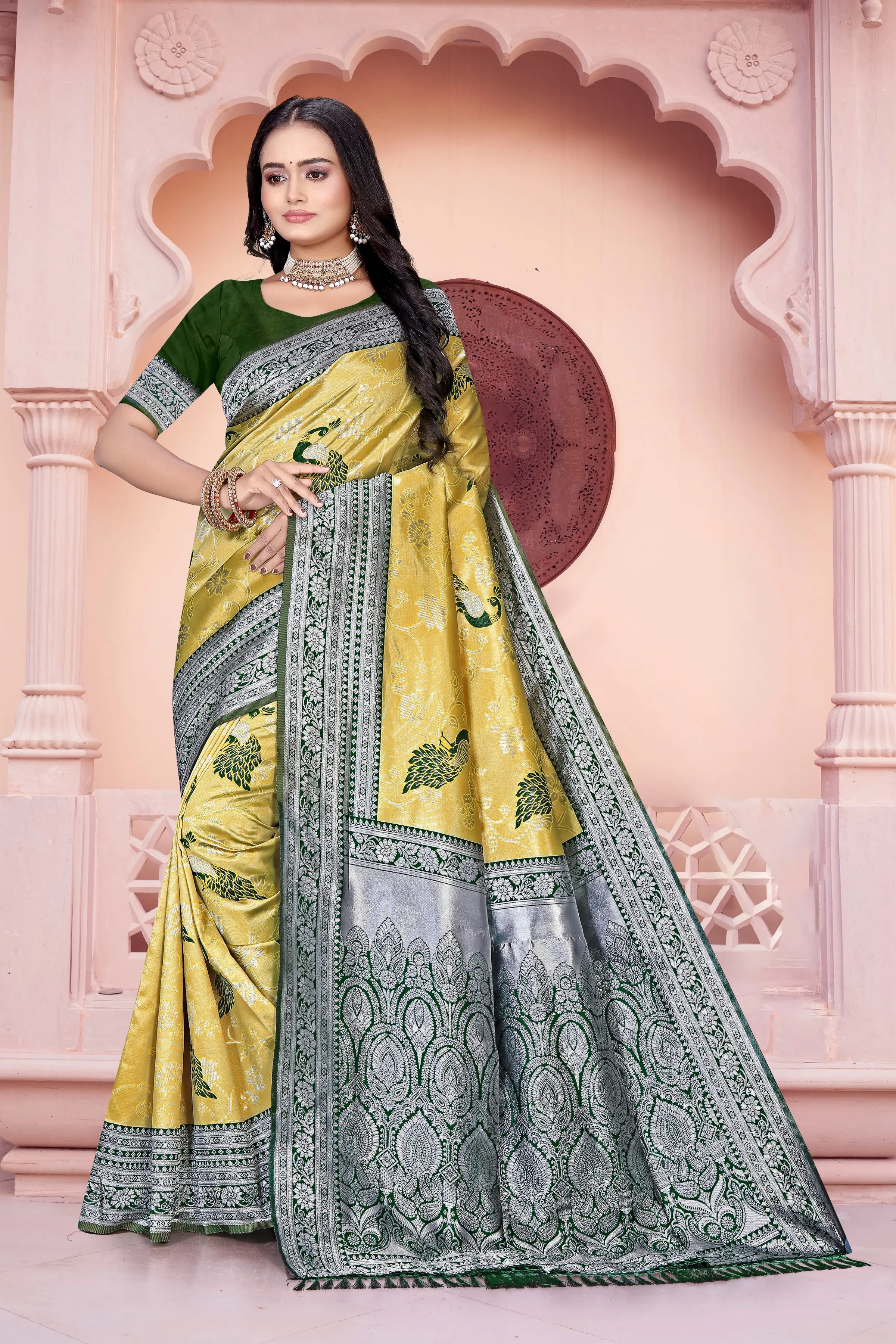 Smooth, lightweight, and designed for a perfect drape, this saree is ideal for festive occasions, weddings, and celebrations. Finished with a tassel-detailed pallu, the Star Silk Saree captures the beauty of simplicity with a hint of sparkle — just like a star.