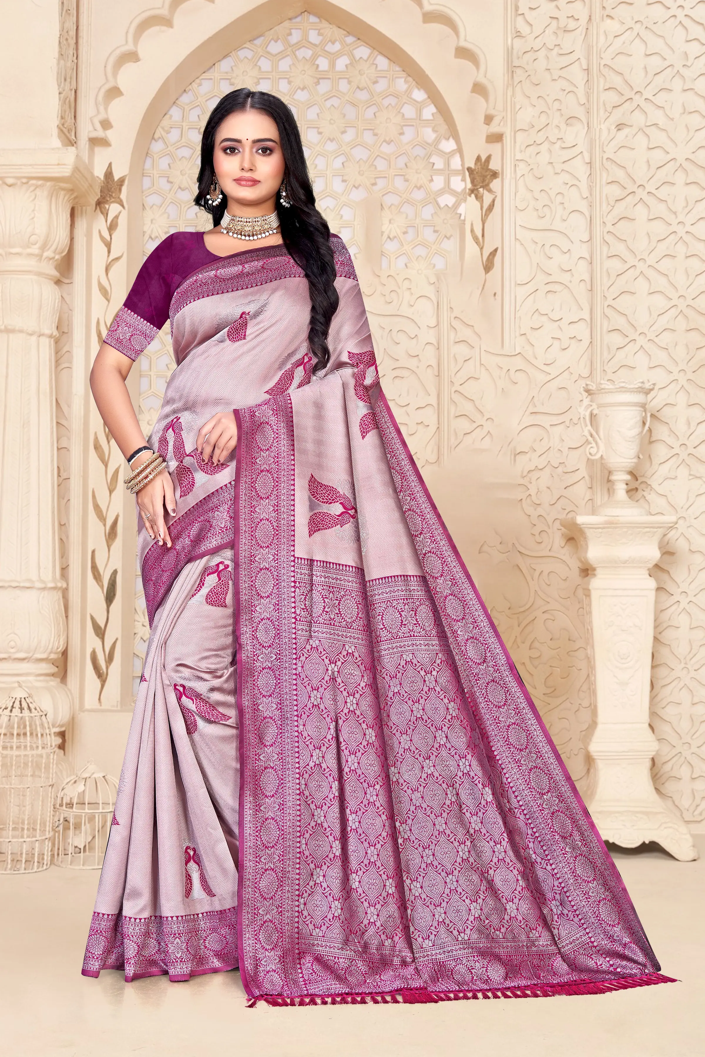 Smooth, lightweight, and designed for a perfect drape, this saree is ideal for festive occasions, weddings, and celebrations. Finished with a tassel-detailed pallu, the Star Silk Saree captures the beauty of simplicity with a hint of sparkle — just like a star.