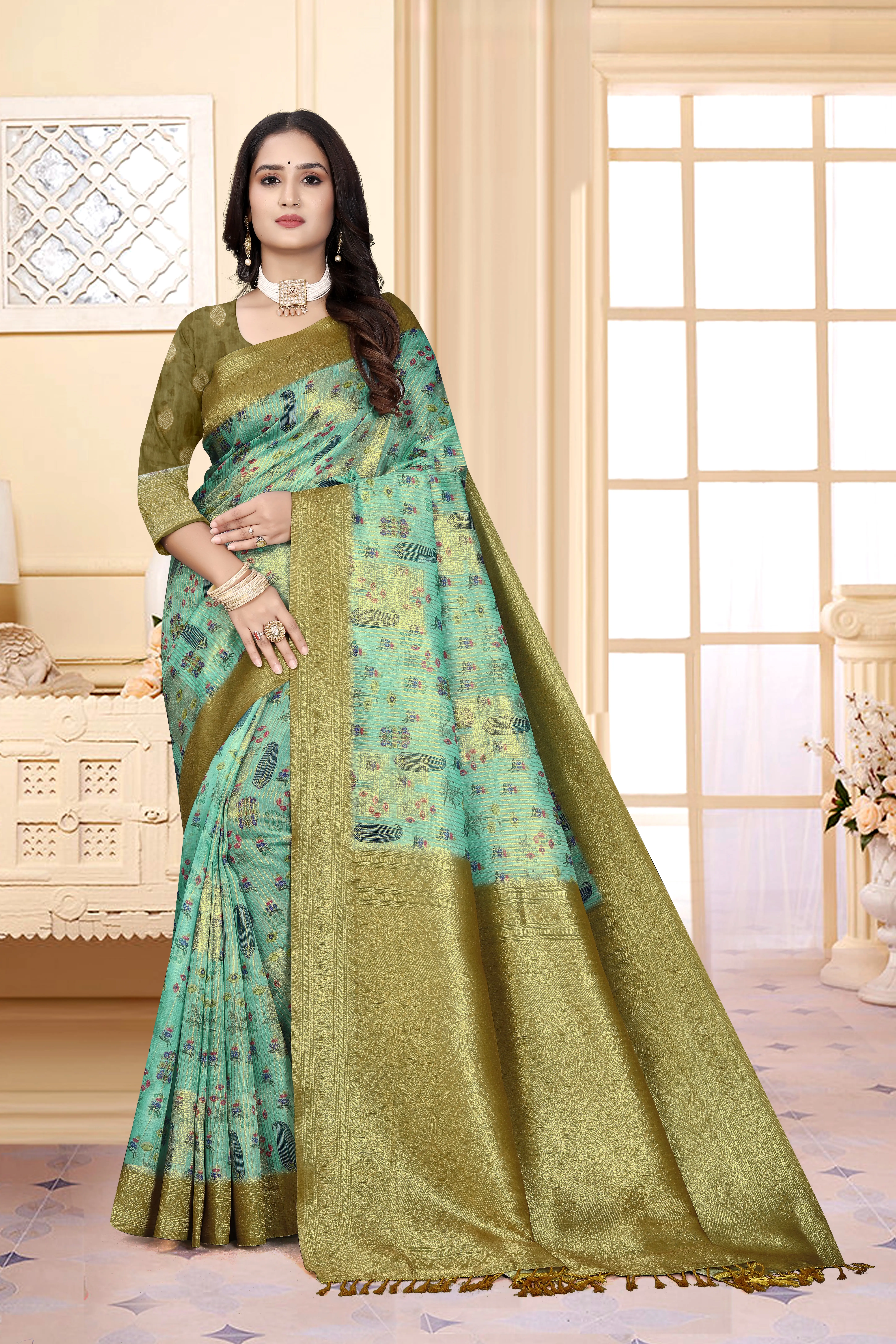 Embody the essence of purity and grace with the Tapo Bhoomi Saree, a symbol of timeless beauty and cultural heritage. Crafted from luxurious soft silk in a serene beige shade, this saree is adorned with vibrant floral motifs that reflect harmony, devotion, and artistry.